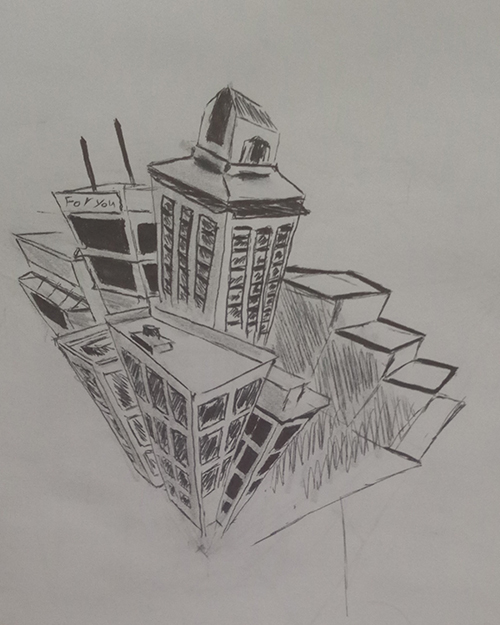 پرسپکتیو سه نقطه به اندازه دو درس قبلی شاید کاربرد نداشته باشه اما اگه میخواید یه محیط وسیع یا نمای خیلی باز بکشید به دردتون میخوره ":) مثلا بخوایم یه شهر رو نشون بدیم میتونیم ازین نما استفاده کنیم .